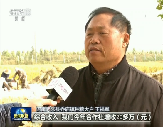 河南省武陟县乔庙镇种粮大户 王福军:今年我们的优质小麦,比普通小麦每一斤高出1毛2分,再加上政府补贴,综合收入我们合作社增加20多万。