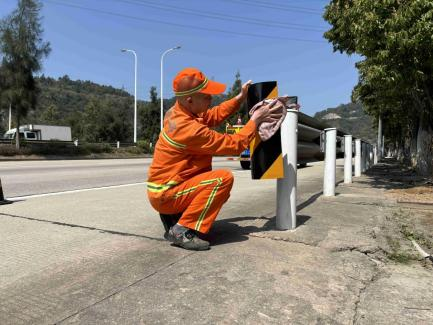 郑文在G228线擦洗沿线设施(连江公路中心供图) “只要路还在,就得有人守。”郑文常这样说。哪怕风雨交加,哪怕节假日当班,只要路面有情况,他总是第一时间冲上前。2023年7月,强台风“杜苏芮”侵袭福建,连江境内风雨交加,G228线浦口镇官岭村附近路段大树倒伏,占据整个车道,造成交通中断。灾情发生后,郑文与同事第一时间赶赴现场,在狂风骤雨中冒雨作业。他们穿着雨衣、打着手电,将倒伏的大树一一锯断、拖移、清运,一直忙到深夜才疏通道路。当第一辆车安全通过时,郑文摘下沾满雨水的安全帽,那双布满血丝的眼睛中,闪烁着疲惫却满足的光芒。