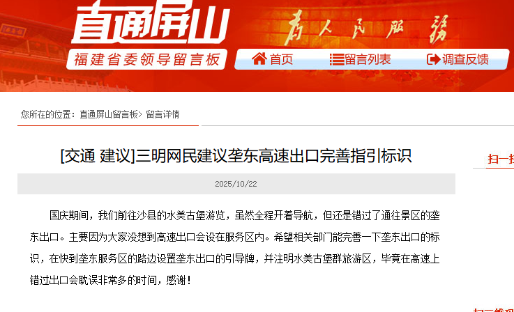 三明“隐身”高速出口追踪:标识已重设并投入使用