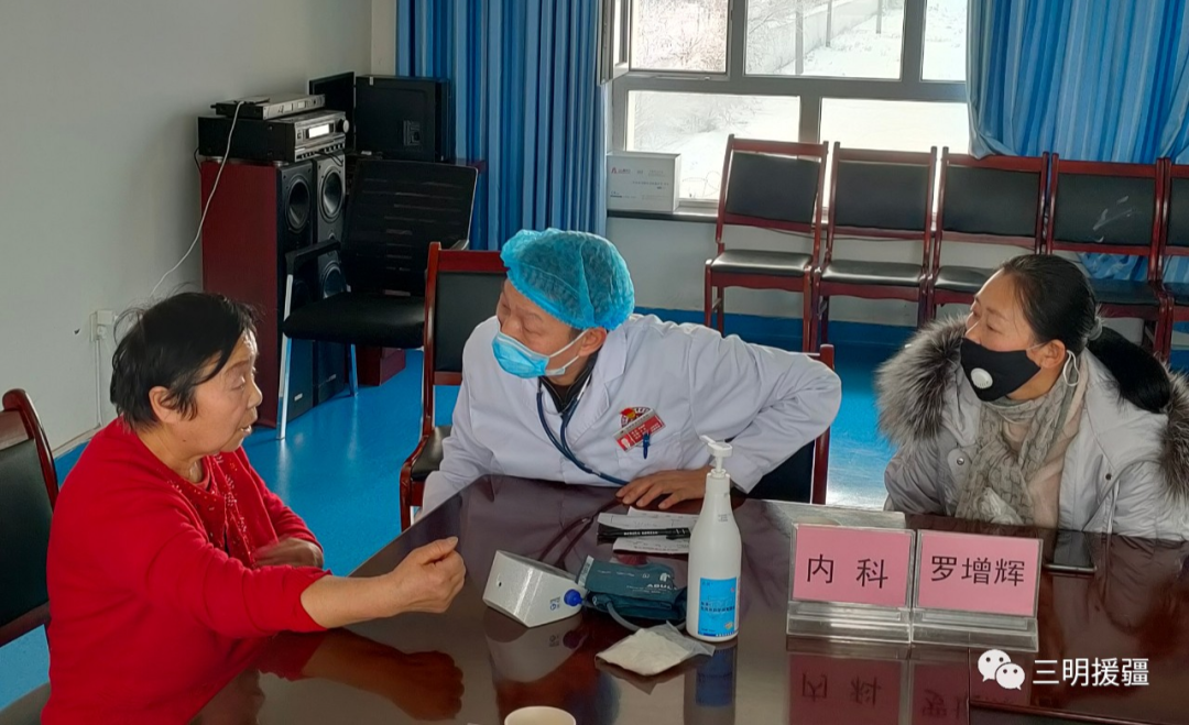 入冬以来,三明援疆指挥部连续3次组织医生走基层、进农村,结合当前新冠肺炎疫情常态化防控形势,认真做好冬季农牧民卫生健康服务工作,加大与基层卫生院的业务交流力度,共同促进基层公共卫生服务水平提升。1月7日,三明援疆指挥部再次会同玛纳斯县中医医院组织援疆医生罗增辉、赖金旺、李水生和县中医院张峰林主任医师等医生一行深入兰州湾镇开展“巡回义诊”活动。活动当天,医护人员热情接待就诊群众,免费为群众测血糖、量血压,耐心询问病情,细心指导用药,根据检测结果和病史给予饮食、生活方面合理建议。昌吉州中医院下沉县中医院的陈韬主治医生也参加义诊活动。