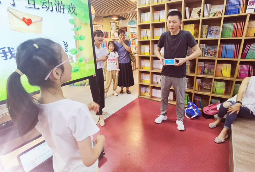 活动在介绍父亲节的由来中拉开帷幕。小朋友们都聚精会神地听着关于父亲节的知识,分享着父亲在自己心目中的形象和与父亲在一起时发生的趣味小故事。接着主持人组织大家分段朗读绘本故事《和爸爸一起真好》,生动、细致的讲解让小朋友们更加了解这本绘本。在对故事基本了解后,小朋友们与父亲玩起了互动游戏“你演我猜”,小小游戏瞬间点燃了现场气氛,卖场内充满了欢声笑语。