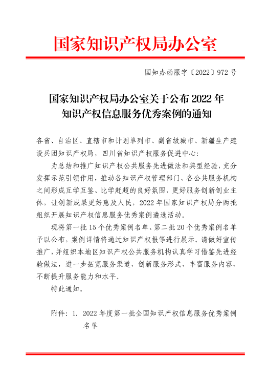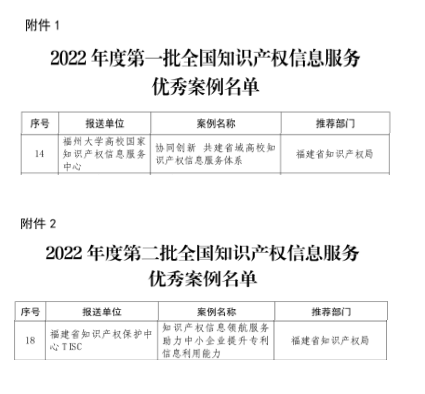 日前,国家知识产权局公布了2022年知识产权信息服务优秀案例名单(第一批15个,第二批20个)。