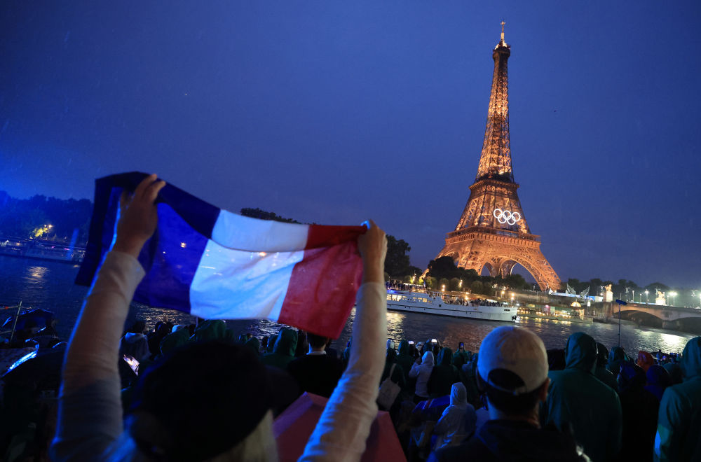 巴黎奥运会开幕式上拍摄的埃菲尔铁塔(7月26日摄)。新华社记者 刘续 摄